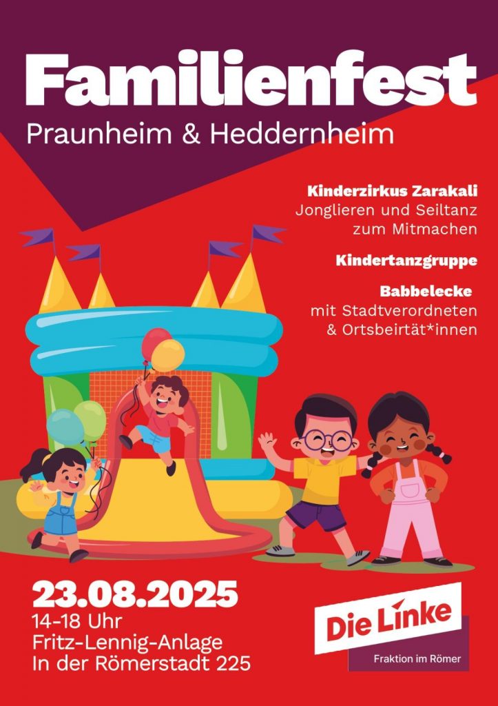 Kuchen & Popcorn sowie Getränke zum kleinen Preis runden das bunte Programm ab. Die Fraktionen und Stadtteilgruppen der Linken und farbechten/Die Linke aus beiden Ortsbezirken freuen sich auf den Tag und auf viele mitfeiernde Menschen!